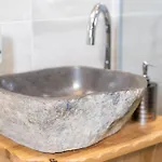 Visitors will enjoy the comfort of a bathroom with a hair dryer, bath sheets, and slippers in this apartment. Additionally, you'll find a separate toilet and a shower.